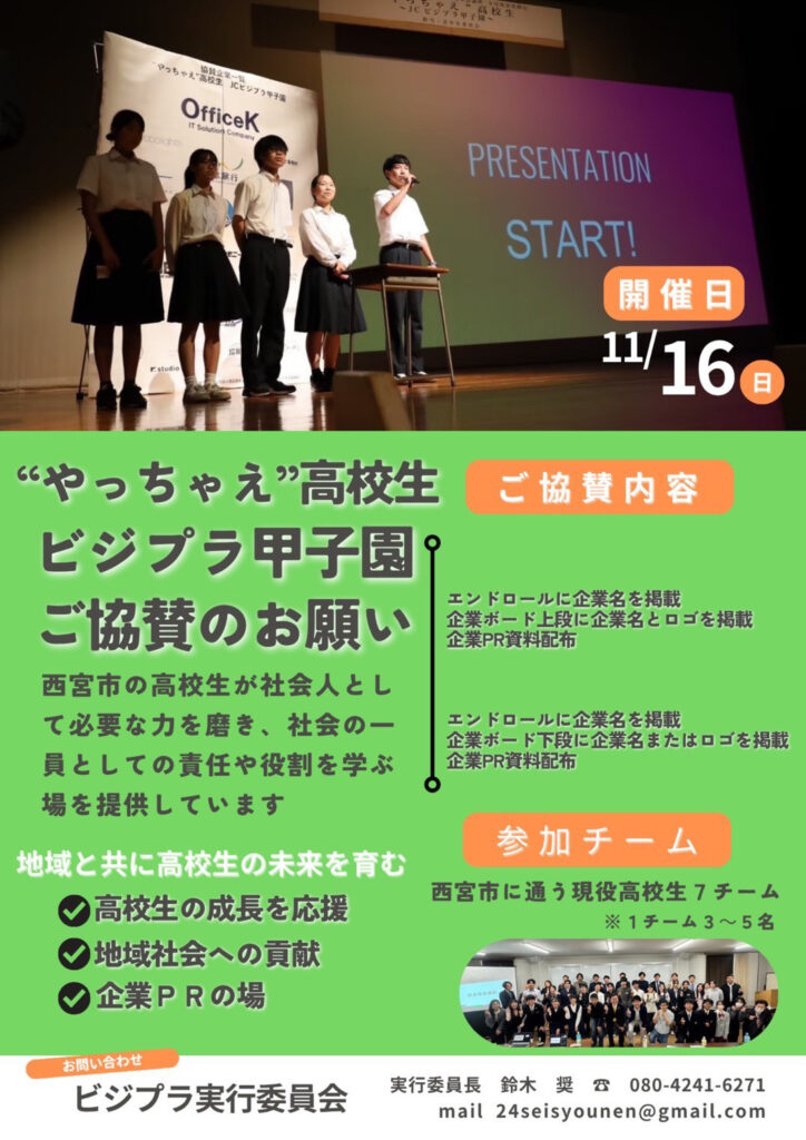 この度、弊社は西宮市制100周年記念事業として開催された「第2回『やっちゃえ』高校生 ビジプラ甲子園」(開催日:11月16日)に協賛いたしました。